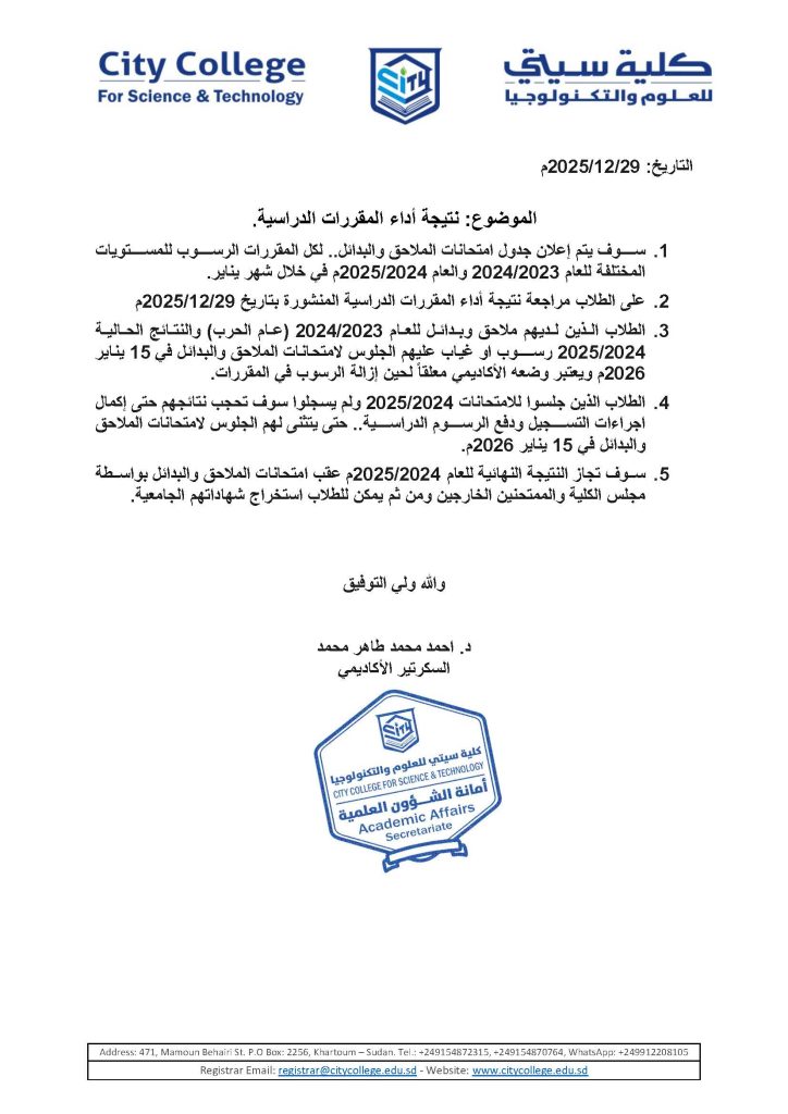 نتائج امتحانات قسم العلوم الإدارية